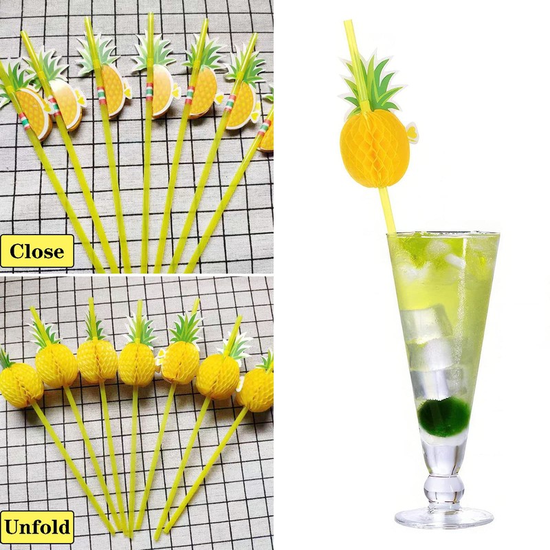 - 【Product Design】The pineapple at the top of the straw have a honeycomb body that you can fold around the straw and secure in place with a tab. The straws are flat-packed and ready for you to assemble. The length can be cropped according to your actual needs.