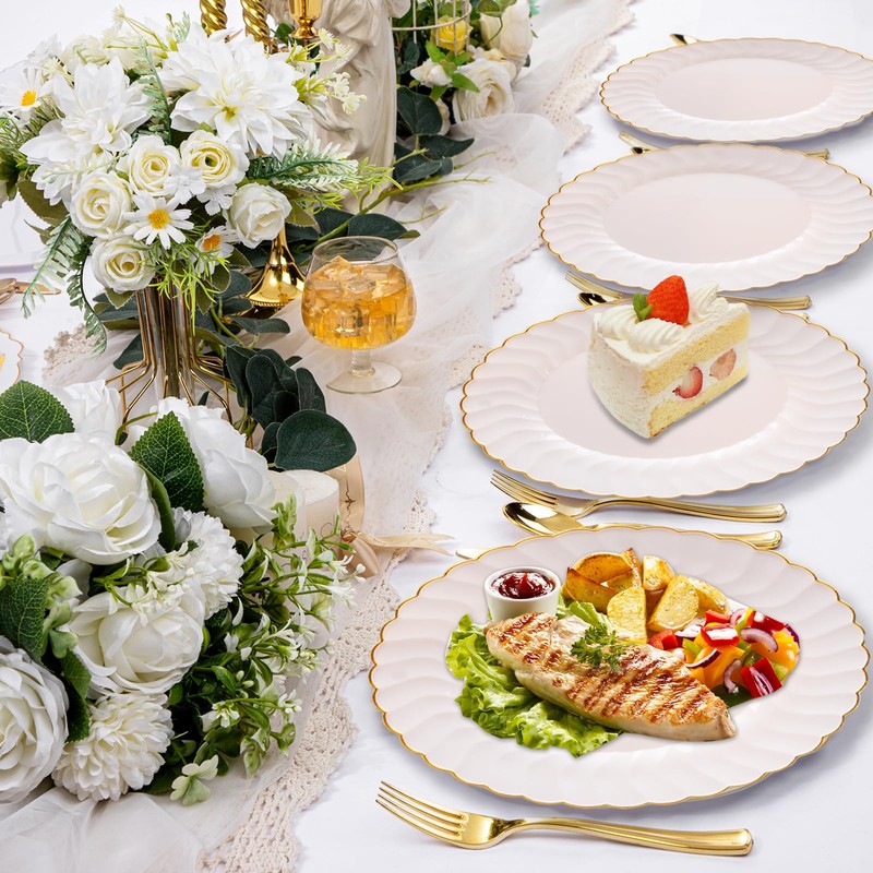 - Exquisite Design: These party plates for wedding have a unique design based on soft pink and decorated with gold borders on the edges, which are simple and elegant and suitable for various styles
