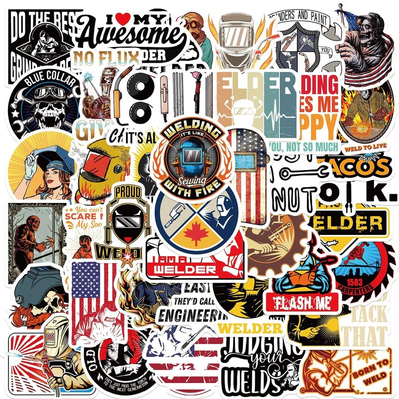 50 Pcs Welder Stickers Cool Vinyl Helmets Stickers for Laptop Skateboard Water Bottle Notebook Car Phone Bike Guitar,Waterproof Funny Welding Hard Hat Sticker for Teens Adults