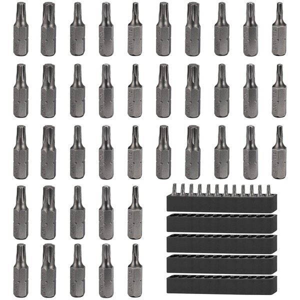 - Package includes: you will receive 50 pieces Torx bits and 5 pieces of memory strips. Bits of 25 mm length. The models are T10, T15, T20, T25, T30. making them accessible for various tools.