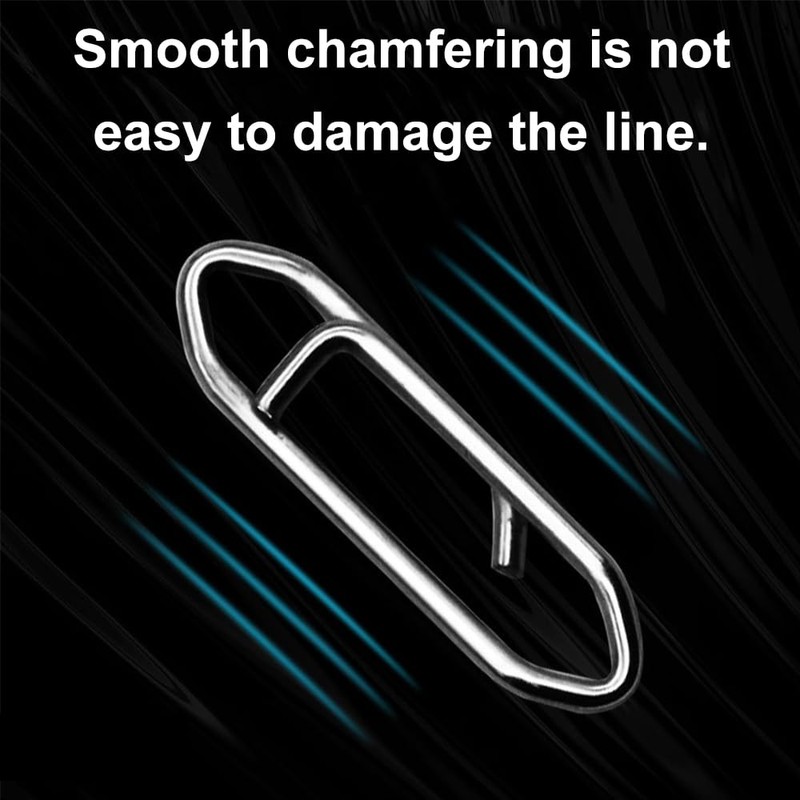 - [High Quality Workmanship]:The fishing snap clip is polished to a smooth rounded surface that will not hurt your hands or scratch the fishing line when you use it, with an oval design that is narrow and wide in the middle at the ends, it does not hinder the movement of the bait and prevents the knot from shifting.