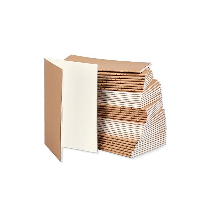 50 Pieces Pocket Kraft Notebook Small Mini Notebook Travel Journals for Students School Office Writing Class Projects, 5.12 x 3.54 Inches (Brown Cover,Unlined Blank)