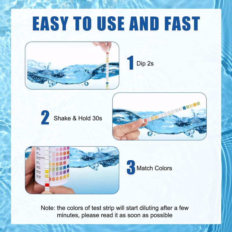 - Schnelltests: Das moderne leben ist schnelllebig und die menschen hoffen, aufgaben in kürzester zeit zu erledigen und zufriedenstellende ergebnisse zu erzielen. Tauchen sie pool tester wassertester einfach etwa 30 sekunden lang in wasser und es werden schnell eindeutige testergebnisse angezeigt. Die schnellerkennungsfunktion von poolwasser teststreifen spart nicht nur wertvolle zeit, sondern verbessert auch die effizienz der täglichen schwimmbadpflege.