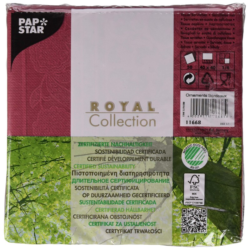 50 Servietten "ROYAL Collection" 1/4-Falz 40 cm x 40 cm bordeaux "Ornaments"