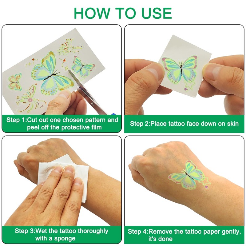 - EASY APPLICATION & REMOVAL: These waterproof temporary tattoos are simple to apply—just place the design face down on the skin, wet it with water, and wait 10 seconds. They typically last 3-4 days and can be easily removed with makeup remover or cotton.
