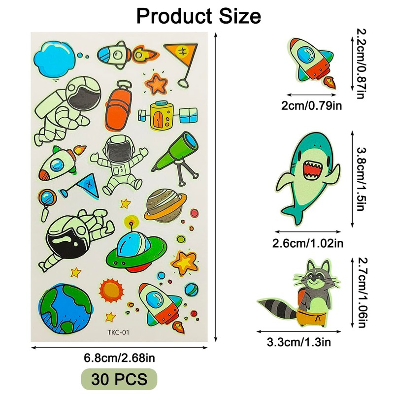 50 Sheets 650 Pieces Temporary Luminous Tattoos Stickers, DaKuan Space/Shark/Animals/Butterflies Mixed Styles Glitter Stickers Suitable for Party Favor Supplies