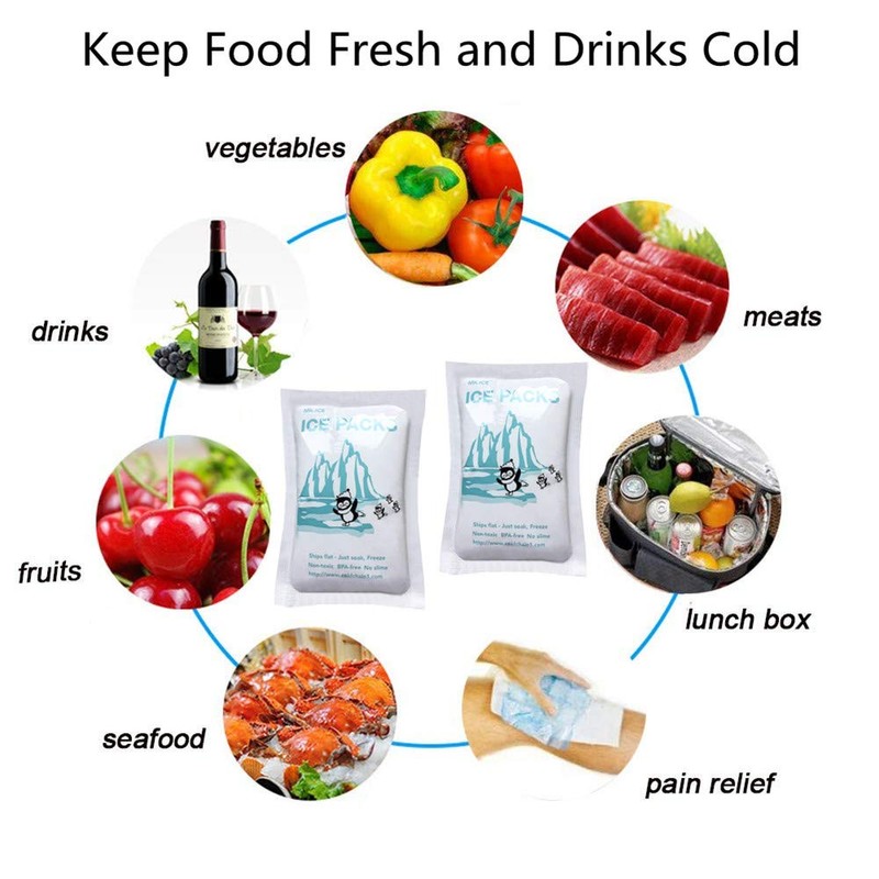 - Safe & Reusable: Mini ice freezer blocks are made from non-toxic material, safe for daily use. 3 layer strong constructions make sure cold ice packs can be reused for multiple times. Ice packs can be used not only for lunch bags, lunch box and coolers, but also in the transportation industry, for example, ice pack sheets for shipping food, seafood, breast milk, medicine, vaccines, fresh beer, beverages, perishables, pathology samples etc.
