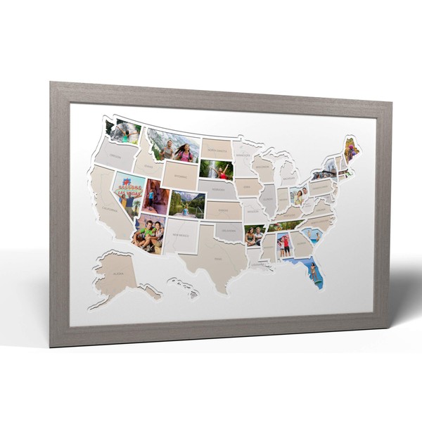 50 States USA Photo Map - Frame Optional - Made in America (White, Grey Frame)