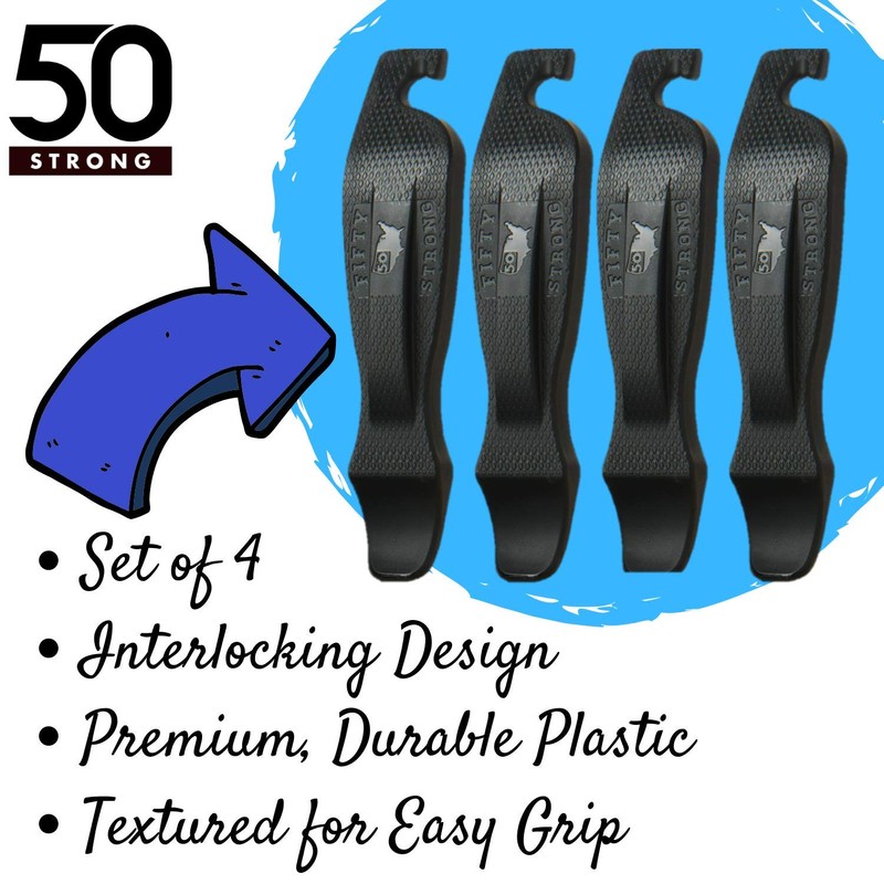 50 Strong Bike Tire Lever - Set of 4 Easy Grip Bicycle Levers - Best Tire Changing Tool - Made in USA and Designed to Snap Together for Storage (Black - 2)
