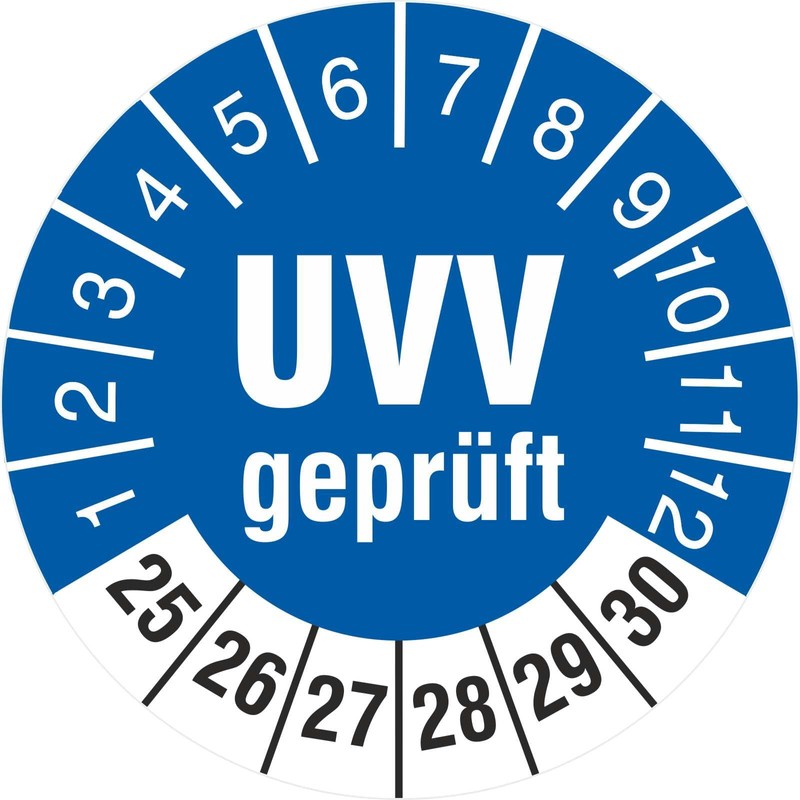 50 Test Badges UVV Tested Test 18 mm Test Labels 2025-2030