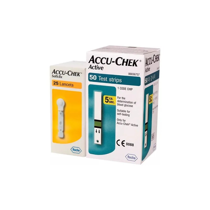 50 Tiras Accu-chek Active + Accu-chek Spftclix 25 Lancetas Color Azul Petróleo