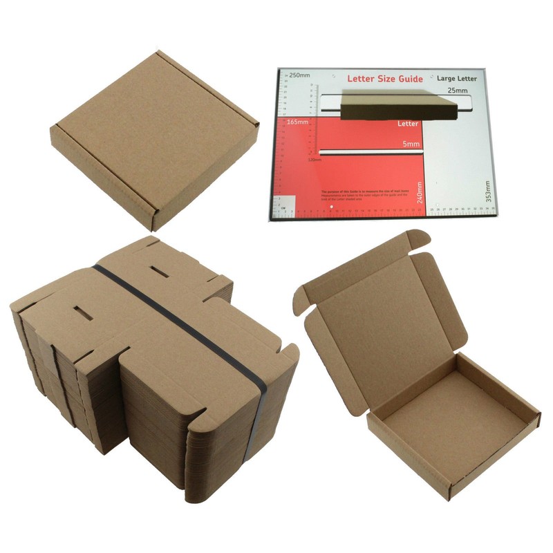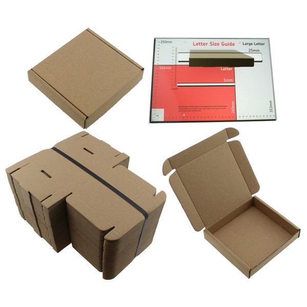 - 50 x BROWN CARDBOARD BOX SQUARE, SIZE: 10cm x 10cm x 2cm. SHIPPING MAILING PIP LARGE LETTER