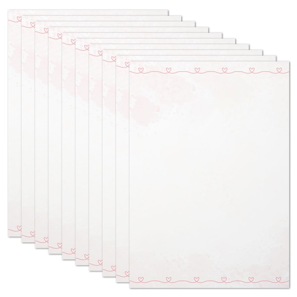 50 x Letter Paper DIN A4 Printed on Both Sides - Blank Writing Paper Set for Writing and Printing for Wedding, Birthday, Invitations (A4, Hearts)