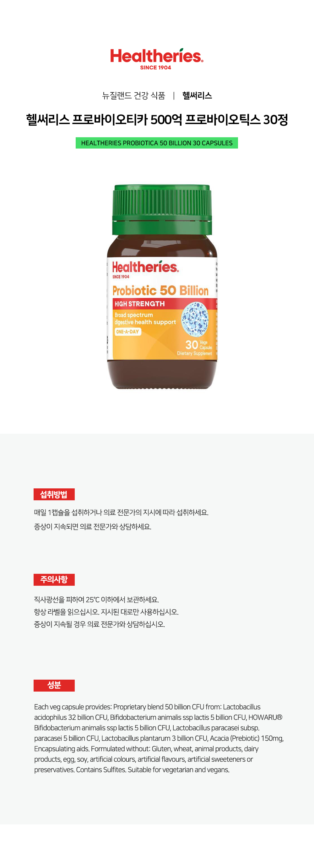 헬써리스 프로바이오티카 500억 프로바이오틱스 30정 Helseris Probiotics 50 Billion Probiotics 30 Tablets