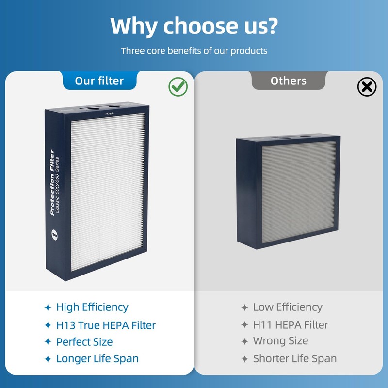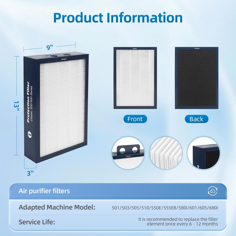 - Perfectly Compatible:The 500/600 Series Dual Protection Replacement Filter compatible with BLUEAIR Classic 501, 503, 601, 505, 603, 650E, 550E, 555EB, 605, 580i, 680i, Please check your required model and size again before placing an order to avoid making a wrong purchase