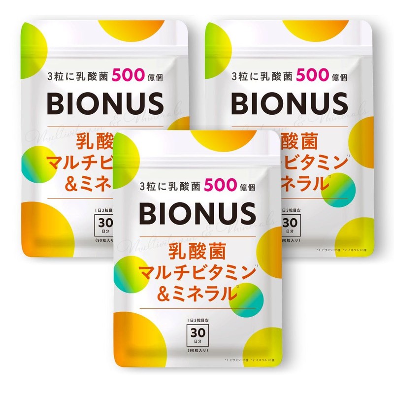 ビオナス マルチビタミン ミネラル 乳酸菌 500億個 BIONUS サプリビタミンA ビタミンB ビタミンC ビタミンD ビタミンE 90日分 3袋セット