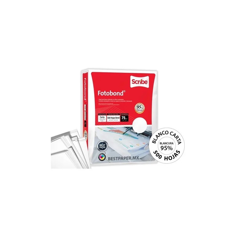 500 Hojas Scribe Papel Fotobond Blanco Carta 95% Blancura 75 g