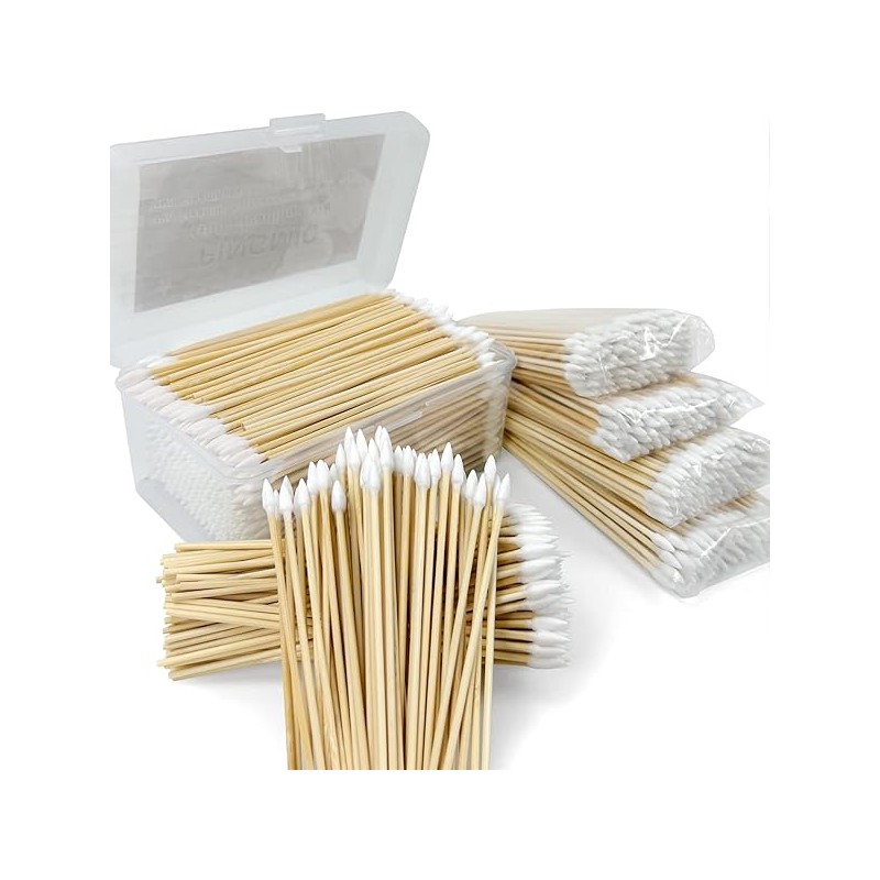 500 PCS 6-Inch Precision Gun Cleaning Swabs with Storage Case - Lint-Free Bamboo-Handle Long Cotton Swabs for Gun Cleaning, Makeup & Electronics