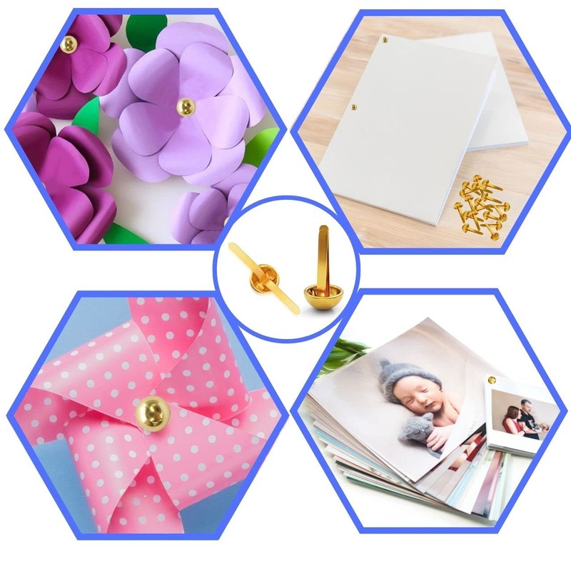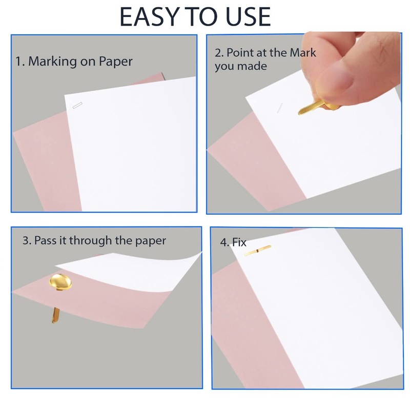 - Easy to Use — To apply these mini brads, you should first poke a hole with a push pin at the place you want, and replace the push pin with the brad, the size of hole made by a push pin is just fine