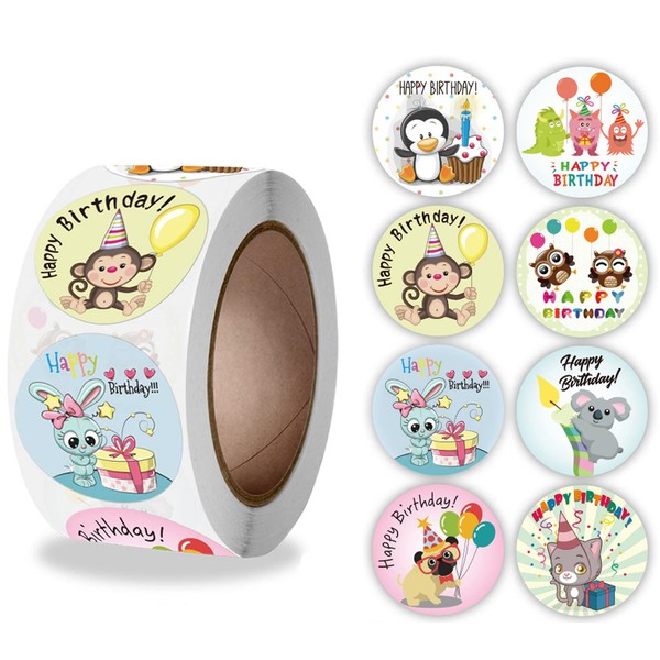 - 【Quantity】You will get 500 cute birthday wishes stickers. There are 8 animal designs. Each design is 1 inch in size. The back of the design has a durable adhesive, which can be used for a long time.