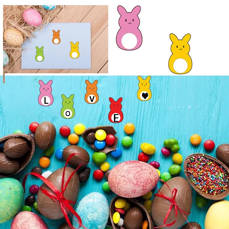• Easter Bunny: These stickers are designed in the shape of rabbits and come in six different colors. Each rabbit has a blank space on its body that can be DIY on its own.