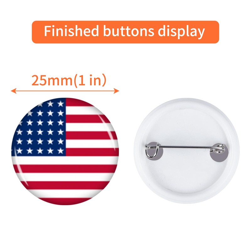- 【500 SETS OF BUTTON KITS】 Button making kit includes 500 sets of 25mm/1 inch blank round button making supplies. The round button set includes metal cover, plastic back cover, clear film, blank round paper for your casual diy support.