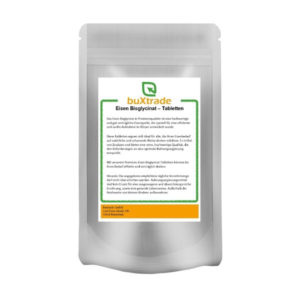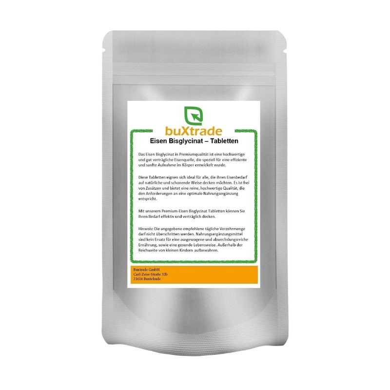 500 Stück Eisen Bisglycinat Tabletten | 250 g | Nahrungsergänzungsmittel | Tabs | Eisen | Buxtrade