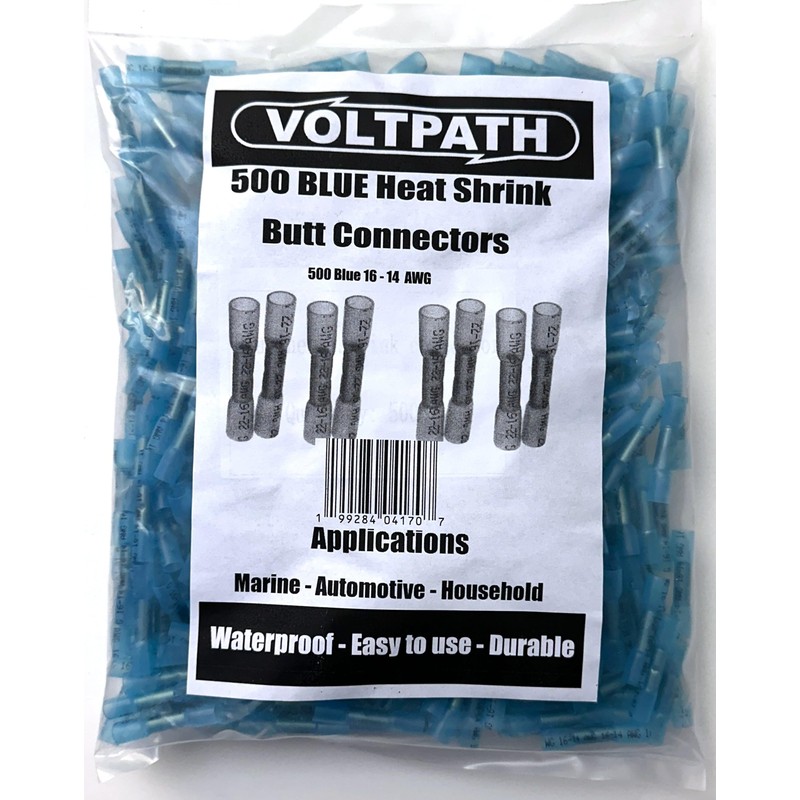 500-Pack Blue 16-14 AWG Heat Shrink Butt Connectors - Waterproof, Marine-Grade Crimp Terminals for Reliable Seals in Automotive, Boat, and Electrical Projects