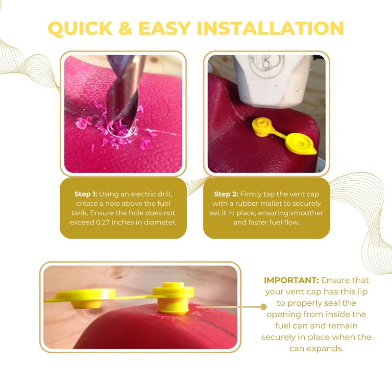 500 Yellow Fuel Gas Can Jug Vents/Cap Replacement Wedco Rotopax Gott Septer Anchor Blitz
