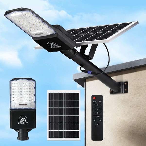 - SOLAR MOTION LIGHTS OUTDOOR: The LED solar street light is equipped with a remote control, which is convenient for long-distance use. You can choose different lighting modes (motion sensor mode, timed lighting mode, and always lighting mode) and light brightness according to your needs. 10%-100% brightness level is adjustable. 3 timing models are available: 3/5/8H