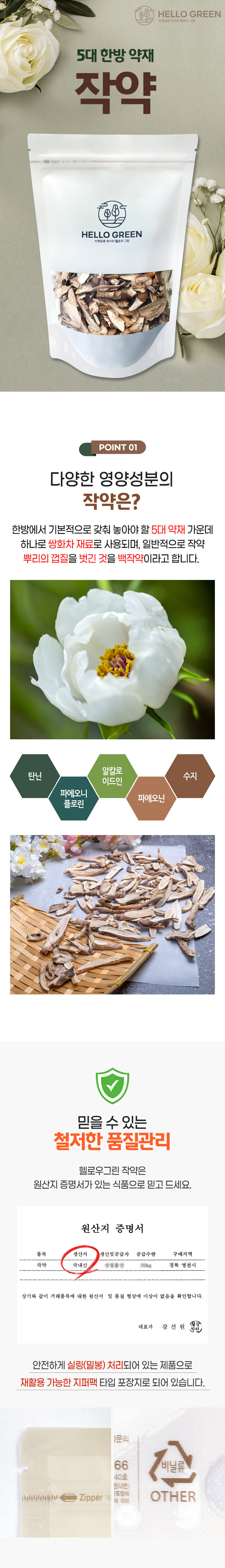 (헬로우 그린)국내산 작약 500g(팩) 백작약 Hello Green Domestic Peony 500g (Pack) White Peony