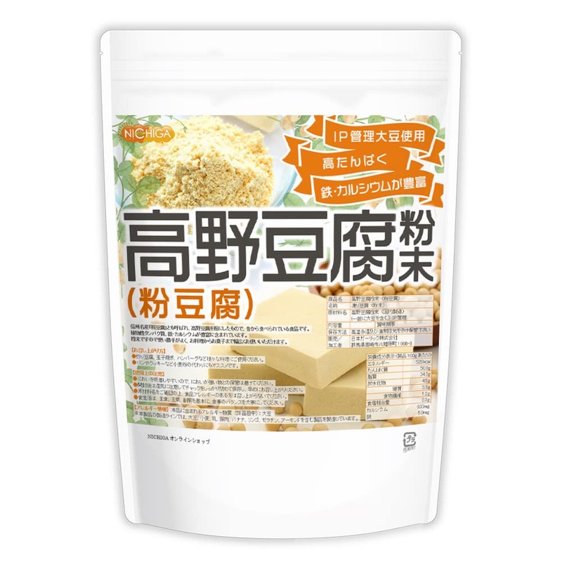 - 信州名産「粉豆腐」とも呼ばれ、高野豆腐を粉にしたもので、昔から食べられている食品です。 植物性タンパク質、鉄・カルシウムが豊富に含まれています。粉末ですので使い勝手がよく、お料理からお菓子まで幅広くお使いいいただいています。 使用大豆は、 IP管理(分別生産流通管理)