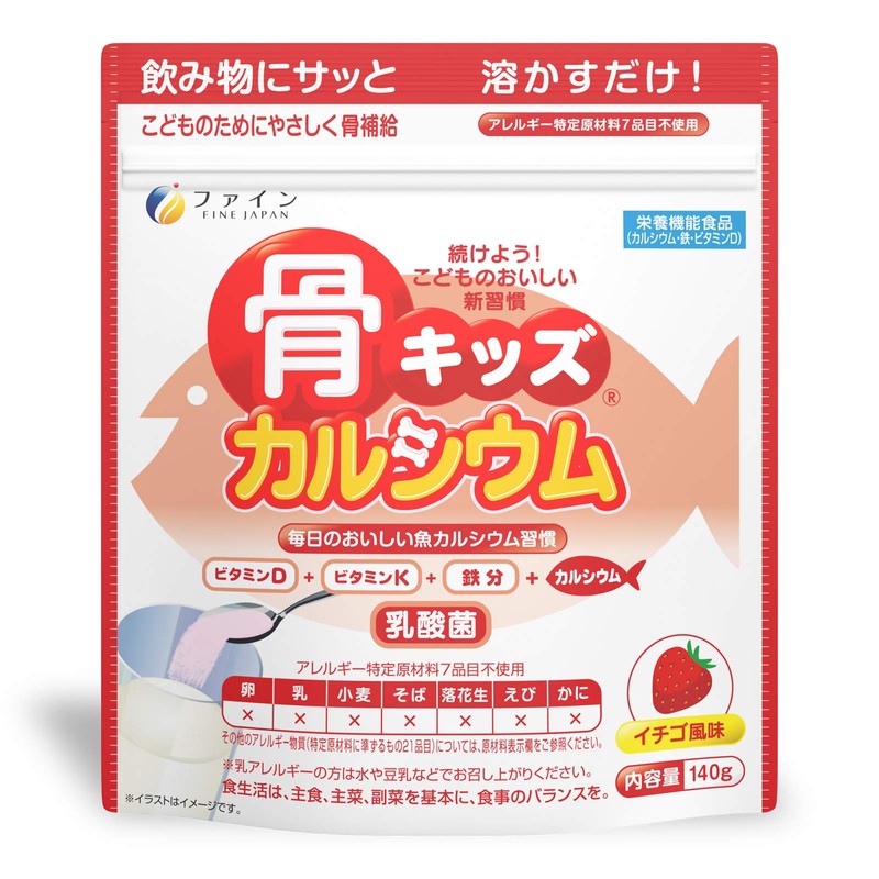 - 骨キッズカルシウムは、魚カルシウムを使用しています。乳アレルギーをお持ちの方でも、水や豆乳に溶かしてお召し上がりいただけます。 また、アレルギー特定原材料7品目不使用の商品です。