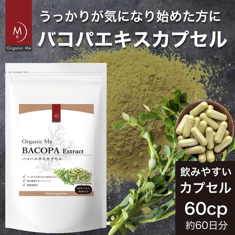 バコパカプセル サプリメント 豊富なバコパサイド 無添加 無農薬栽培 500mgx60カプセル 約60日分 Organic Me (1)