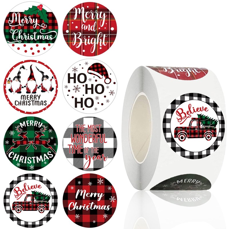 - Ample Quantity: You will get 1 roll of plaid Christmas stickers, 500pcs merry christmas stickers, in 8 styles; The classic red, green, black and white color matching lots of Christmas patterns to choose from, enough to decorate Christmas gift boxes and envelopes