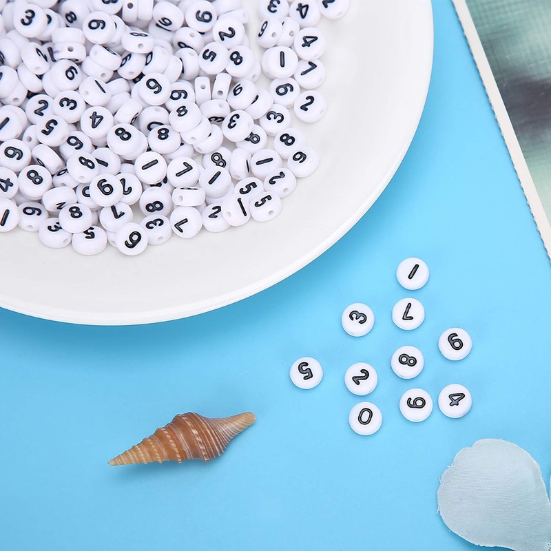 500PCS Número redondo de cuentas de acrílico, cuentas de acrílico DIY accesorios de joyería de cuentas hechas a mano número 0-9 para la colección de artesaníaAdornos con Cuentas