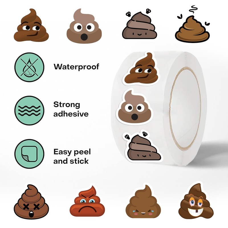 - Poop Stickers: Each roll of stickers has 10 style patterns, and the whole roll has a total of 500 patterns. You can use your imagination to post these stickers to your heart's content!