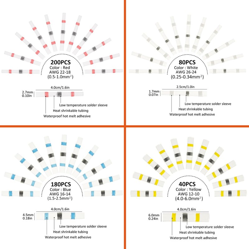 • 🧰【Wide Application】This solder seal wire connector is suitable for marine, automotive, boat, truck, wire connection, soldering heat shrink protection and waterproofing.