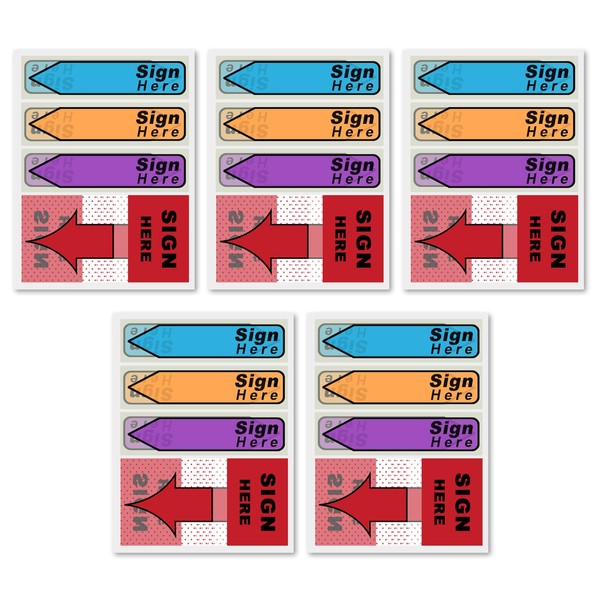 - Exquisite Design: The colorful colors can be easy to attract people's attention and make important information. Each initial here sticker is printed with eye-catching text: "Sign Here".