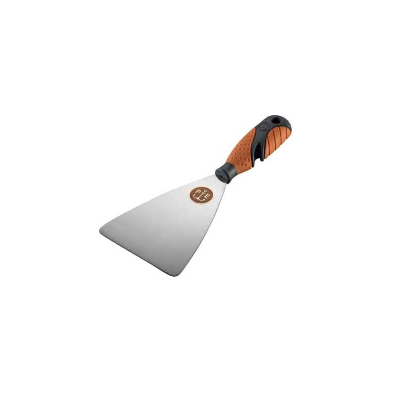 Stainless steel Venetian plaster spatula for polishing Venetian stucco and lime products. Rounded angles, milled blade edge, mirror polished blade.. Special steel welded trowels. Top ergonomics for the widest variety of jobs. Flexibility and toughness guaranteed under all working conditions. Assembly by welding is tested rigorously for load bearing and x-rayed for perfect joining. An exclusive lip process ensure the perfect apllication and the quality of the final polishing operation