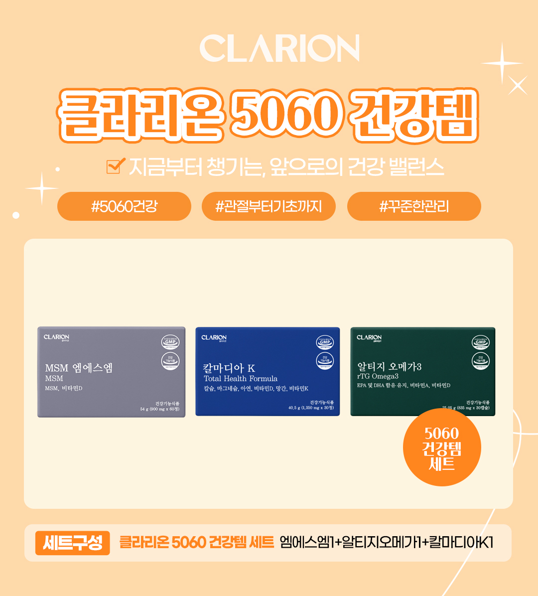 클라리온 5060 건강템 3종 세트 (MSM+오메가3+칼마디아K) / 클라리온 5060 건강템 3종 세트 (MSM+오메가3+칼마디아K)