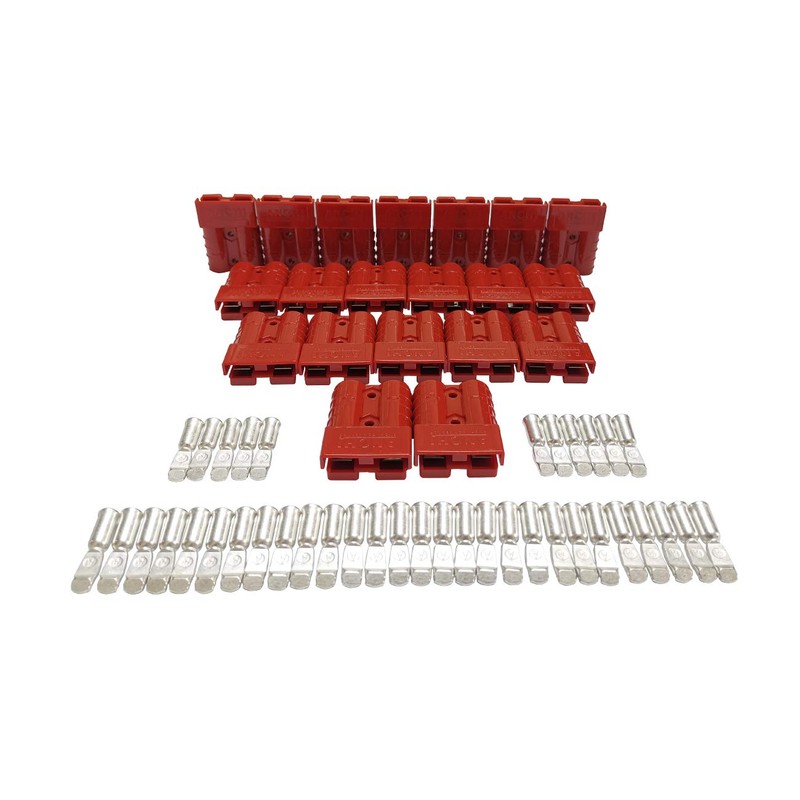 - 20 x 50 Amp Battery Connector plugs (Interconnecting halves),40 x Copper terminals Silver plated,depending on your size choice (number of terminals supplied, will always be double the number of housings as there are two terminals required per housing.)