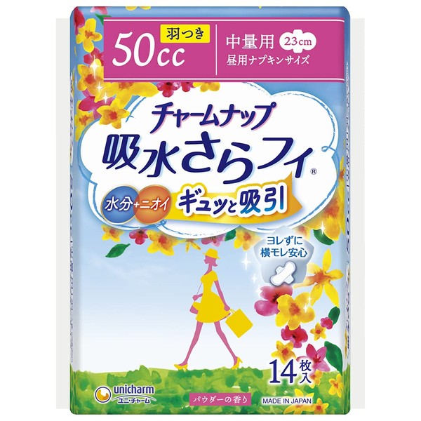 チャームナップ 吸水さらフィ 中量用 羽つき 50cc 23cm 14コ入 (尿 吸収ナプキン 尿もれパッド ナプキンサイズ)【軽い尿もれの方】