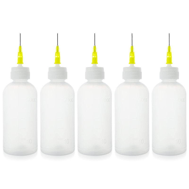 50cc Needle Glue Bottle, Needle Tip Squeeze Bottle, Precision Tip Applicator Bottles, 5 Pack