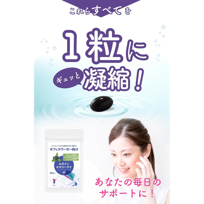 旬贈 ルテインエナジーアイ サプリ 50mg 30粒入り アサイーベリー サプリメント オフィスワーカー向け 国内製薬会社製造