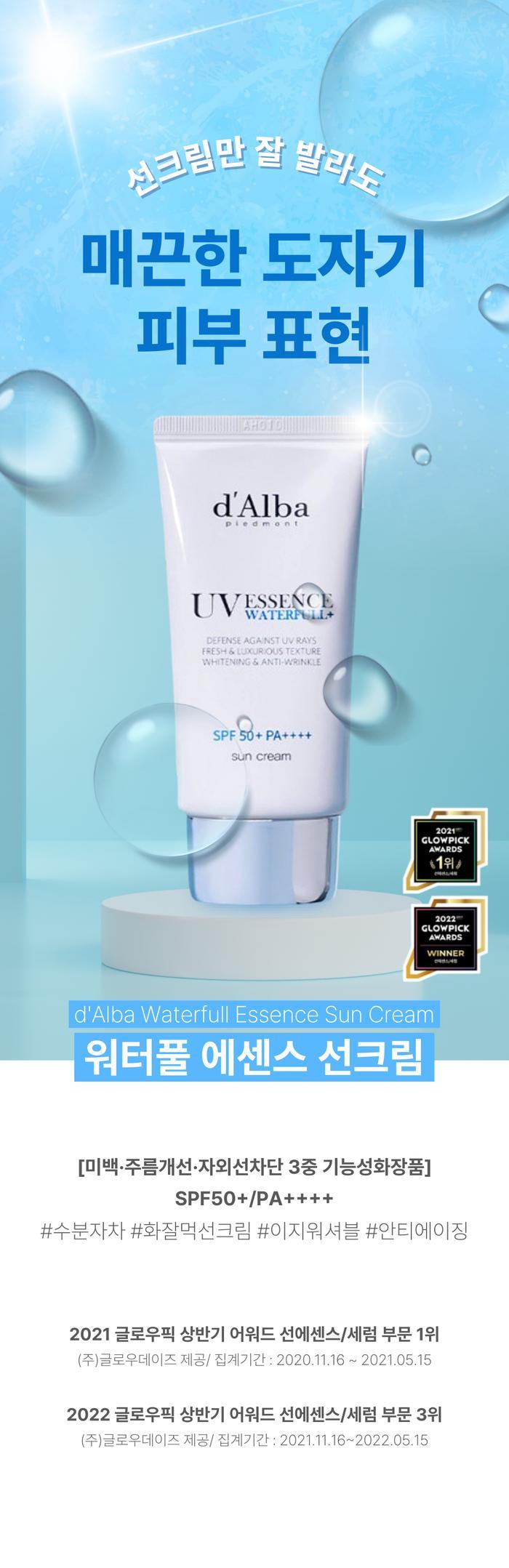 달바 워터풀 에센스 톤업 선크림 수분썬크림 50ml x 1개 Dalba Waterfull Essence Tone-Up Sunscreen Moisture Sunscreen 50ml x 1 piece