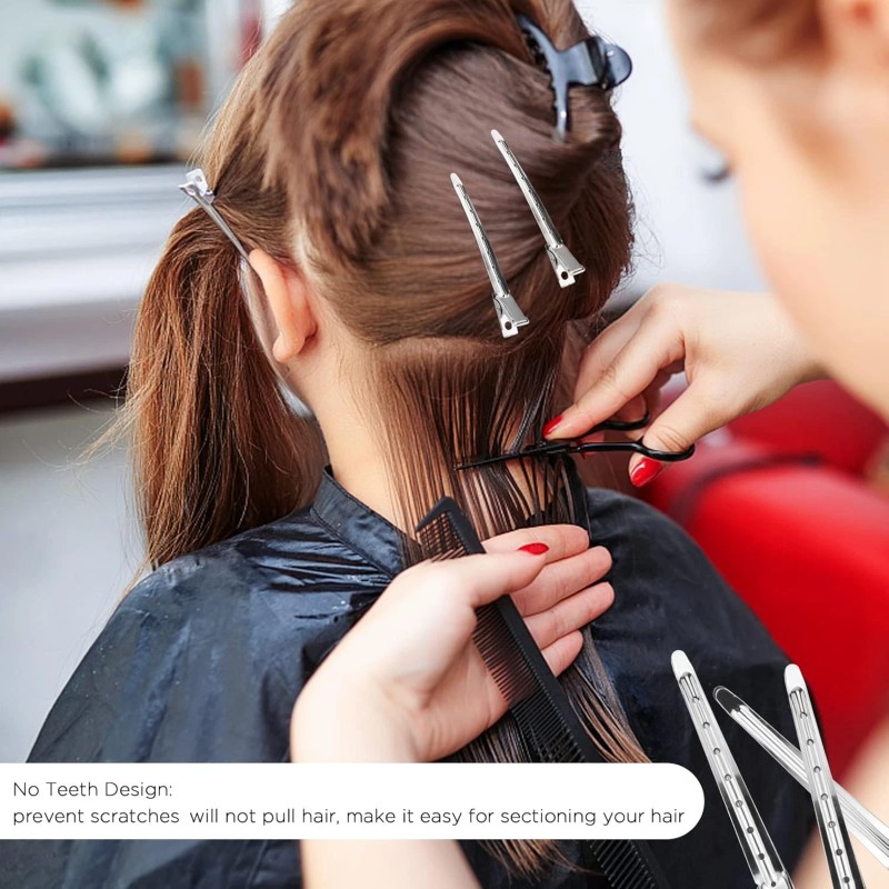 50Pc Duck Bill Hair Clips 3.5" | Silver Alligator Curl Salon Styling Clips
