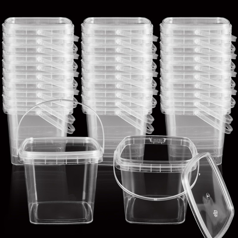 50PCS 10 oz Slime Containers with Lids and Handles, Plastic 300ml Storage Bucket Containers, Clear Empty Slime Buckets for Slime DIY Slime, Art Craft, Pigment, Small Tools, Part Material