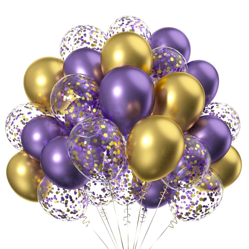 50pcs 12inch Gold and Purple Latex Helium Balloons,Gold Lilac Confetti Balloons for Party Decorations