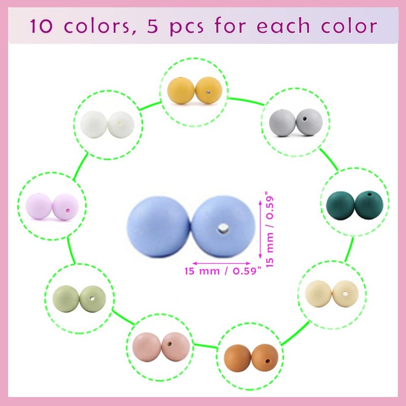 - Round Beads: package comes with 50Pcs round beads in 10 colors(5 pcs for each color), enough color and quantity to meet different requirements in your DIY projects.